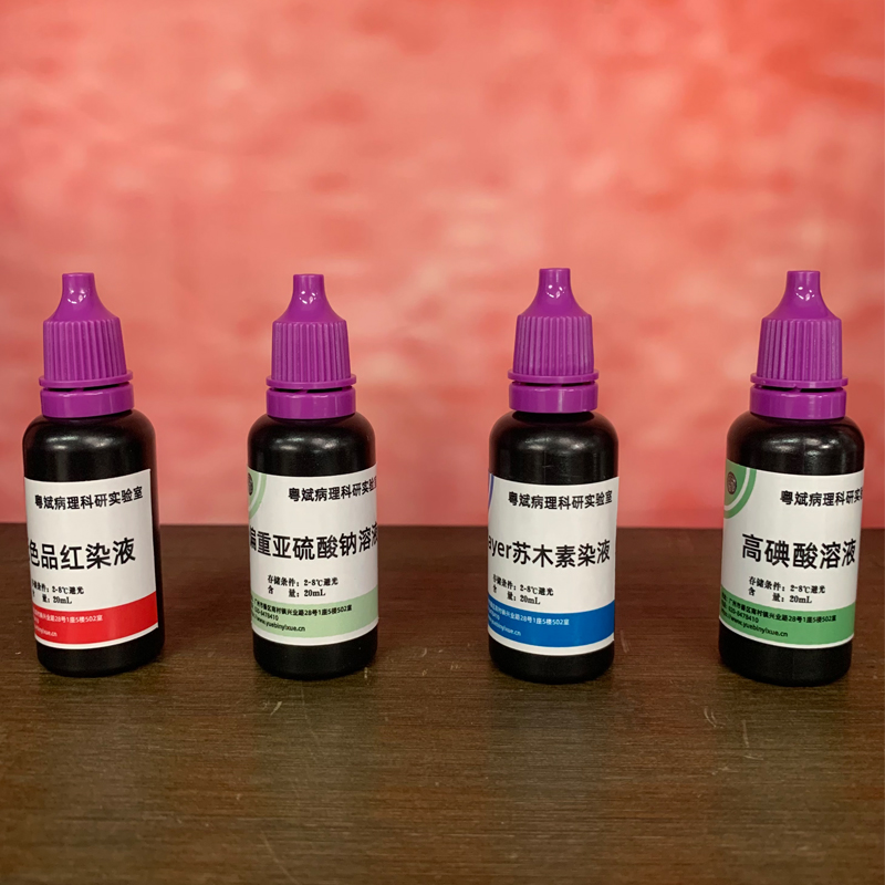 PAS染色又称过碘酸雪夫染色,糖原染色。一般用来显示糖元和其它多糖物质。过碘酸能使细胞内的多糖乙二醇基氧化成二醛,再与Schiff氏液的无色品红结合,红色,定位于胞浆上